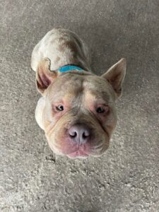 Despite his sad past, Cremé absolutely adores people and affection. He will happily play and climb onto you for belly rubs and kisses, although he definitely doesn’t believe he has a breeze block for head.