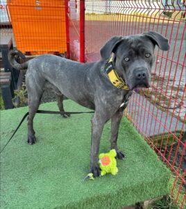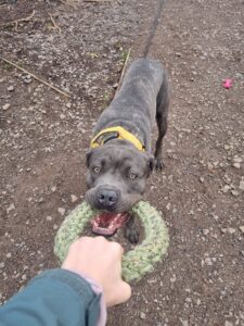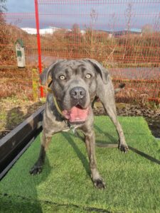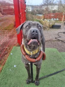 Gomez is still working on his dog socialising skills, it’s clear that he hasn’t had much interaction with them and this shows in him getting frustrated and showing confusing body language signals. However he has been working on calm greetings with the behaviour team and is making good progress . We believe in time, he would love to have some doggie pals to run around with- his new owners will need to be prepared to keep up with this along with taking him to training classes to help him settle into his new home, learn new skills and continue to build on any learnt behaviours.