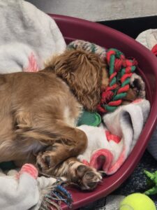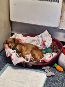 Sweetums is the sweetest little spaniel pup you could ever meet. She came into our care after being abandoned at a vets by the humans who where supposed to keep her safe, she was severely injured and in need of emergency veterinary attention. Sadly, her leg couldn’t be saved and she required an amputation, but that hasn’t held her back one bit!