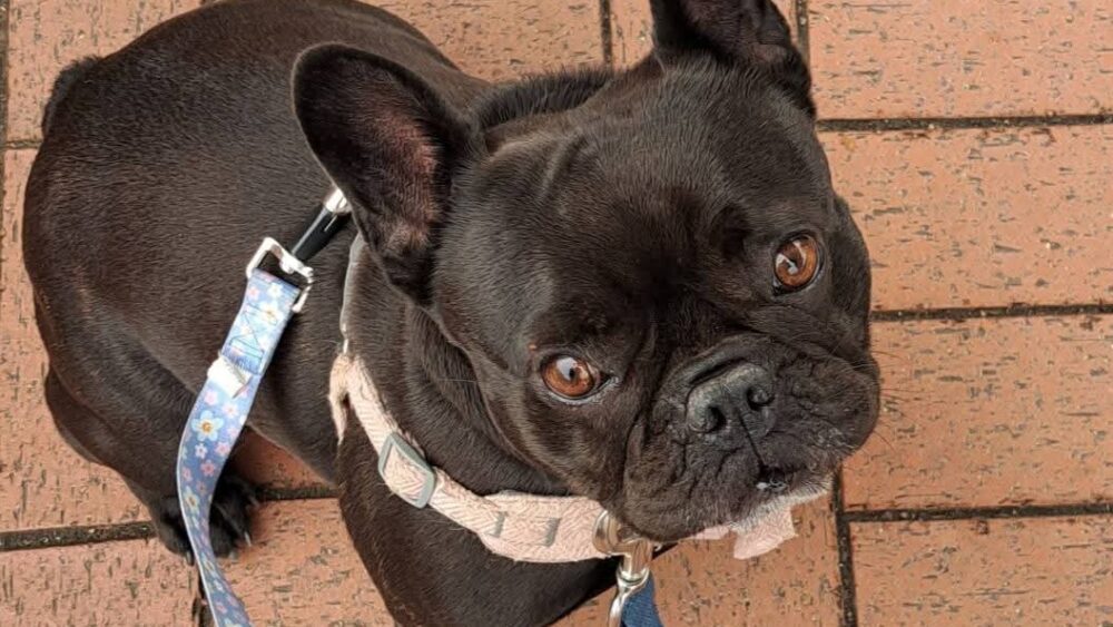 Crumpet is looking for a calm, understanding adult-only home where she can have the peace and quiet she needs to truly relax. Her new family should have experience with the French Bulldog breed and be happy to keep up with her ongoing care — including cleaning her face folds, supporting her joint health, and continuing to help her confidence grow.