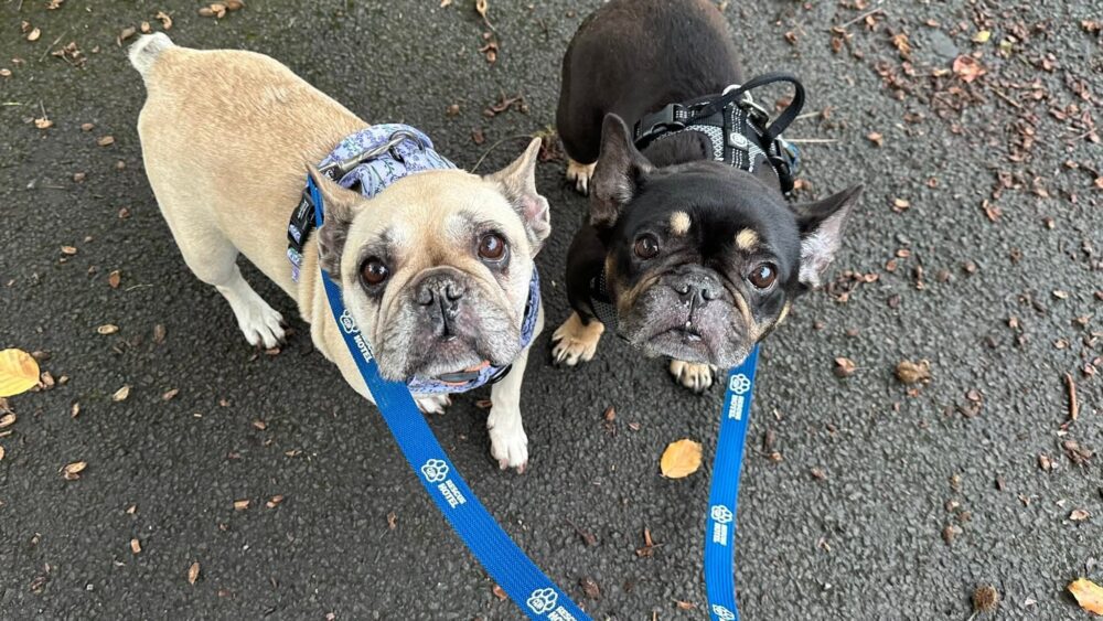 Ebby is the wise, gentle one of the duo — the “mum figure” who’s helped Flo through the tough times. She adores her food, enjoys her walks and cuddles, and loves nothing more than rolling alongside Flo (sometimes they even roll in sync!). Ebby has a slight wobble when she walks, but it doesn’t cause her any discomfort — it just adds to her charm and swagger. Joint and skin supplements will help keep her in good condition, and she’ll also need daily care of her ears, coat, and folds.
