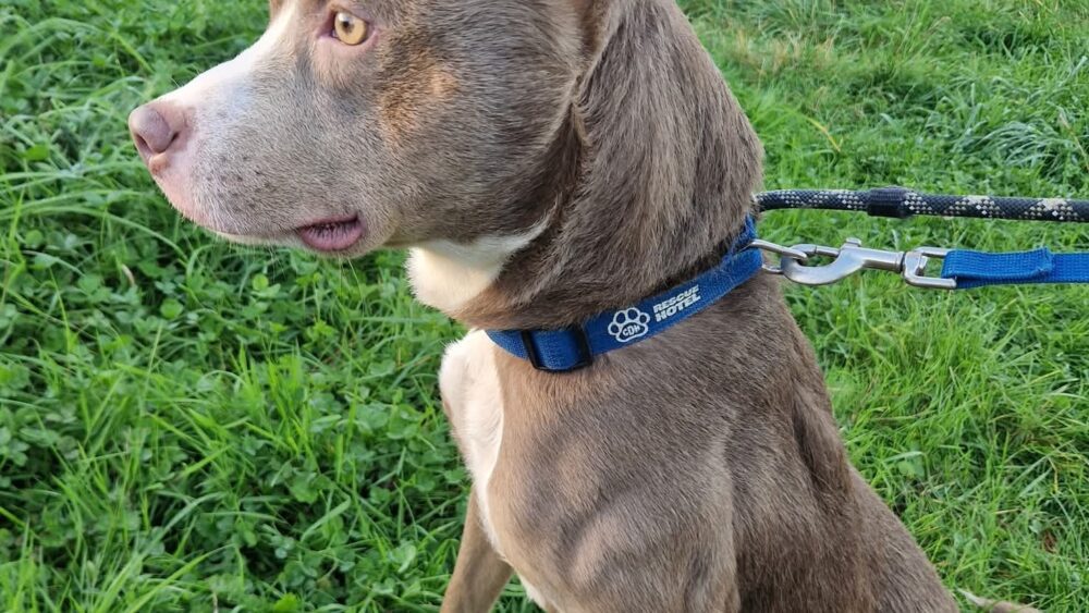 Floyd was brought into our care as a stray, he is only a young lad and was very worried as to where he had ended up. However, he is settling really well into kennel life and has been enjoying his walks with our volunteers and even had a little play session with resident pup maxx !