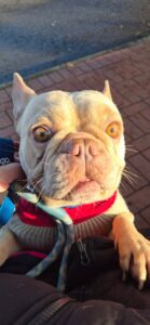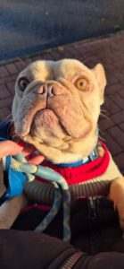 Acorn is a French Bulldog, approximately 1–2 years old, who sadly arrived in our care as a homeless stray. Unsurprisingly, he’s a little scared at first, but he loves people and is full of affection and love once he trusts you.