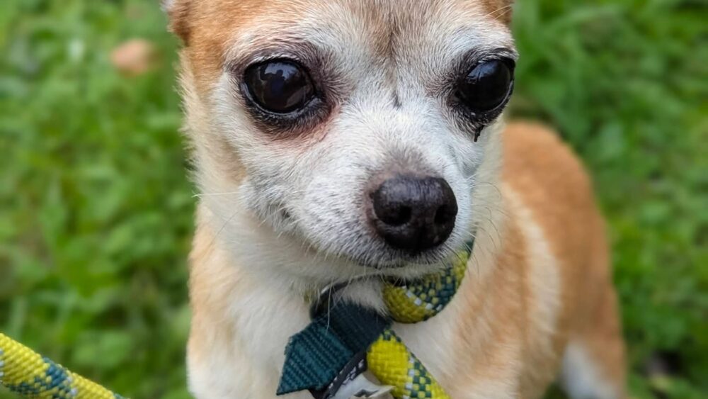 Please welcome Tiny, an adorable and truly tiny Chihuahua. He’s 11 years old and was brought into our care as a stray.