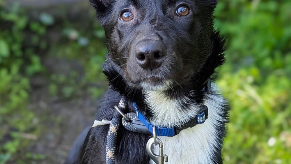 Baby Guinness is a working Collie puppy, approximately 5–6 months old, who arrived in our care as a stray.