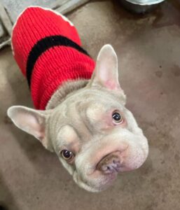 Ci Tarw Ffrengig (French Bulldog) ifanc yw Tiny Tim, ein cymeriad avatar bach ni ein hunain, a gyrhaeddodd i’n gofal oherwydd iddo gael ei ddarganfod yn crwydro. Mae TT bach yn ymdrechu’n galed i fagu hyder a meithrin sgiliau cymdeithasu. Wedi iddo gyrraedd yma dangosodd mai ef yw’r bachgen anwylaf, ond iddo gael ei amddifadu o gariad. Wrth weld ein milfeddyg sylwyd bod gan Tiny Tim lawer o fraster o’r naill ochr i’r llall o’i drwyn sy’n gorchuddio ei ên isaf. Golyga hyn y bydd angen golchi a sychu o gwmpas ei geg bob dydd i’w gadw’n glir o facteria a lleithder. Bydd  angen golchi plygiadau wyneb ac o gwmpas pen ôl Tim bob dydd hefyd. Nid oes gan Tiny Tim unrhyw broblemau bwyta ac mae’n caru ei fwyd. Mae’n fodlon iawn yn bwyta’i fisgedi pysgod cyflawn oherwydd nid yw bwyd cŵn gwlyb yn cytuno ag ef. Mae hyn yn wir am llawer o fridiau brachycephalic sy’n dod i’n gofal ni. Bydd angen cartref lle mae’r teulu yn medru deall anghenion TT bach, sef ei fod angen man diogel, digynnwrf arno lle y gall brifio yn ei amser ei hun. Bydd angen teulu sy’n gallu rhoi gofod iddo a gadael iddo fagu perthynas â nhw ar ei gyflymder ef ei hun. Mae’n bosibl y gallai fyw gyda chŵn eraill a chathod sydd wedi eu hysbaddu ac sydd o natur dawel. Mae Tiny Tim yn chwilio am gartref tawel heb blant. Nid yw’n barod am lawer o weithgaredd yn y cartref gan ei fod yn gallu poeni ynghylch pobl newydd a gormod o sŵn.