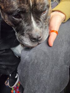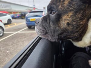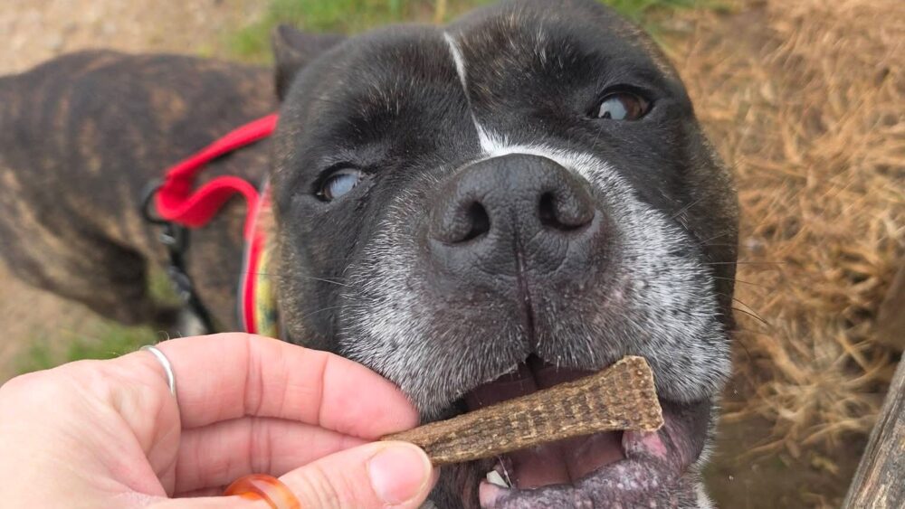Mae Hank yn gymysgedd Bulldog aeddfed sydd yn sicr ddim yn datws soffa! Mae gan y bachgen hwn egni batri ailwefradwy – mae’n dal ati. Mae Hank yn hollol wallgof am bêl ac yn chwarae’n hapus am oriau, gan gario ei bêl-droed o gwmpas yn falch ble bynnag y mae’n mynd.